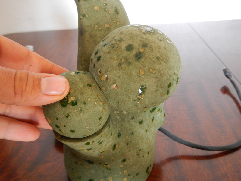 5. Dann den gestopften Kopf mit der unglasierten Seite in die dafür vorgesehene Öffnung des Vabongs einsetzen so das er perfekt sitzt.